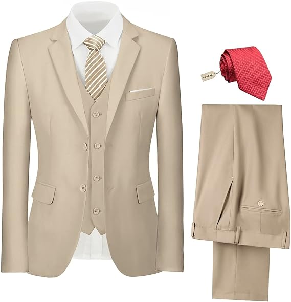 Mens Suit 3 Piece Set Slim Fit Wedding Groomsmen Suit for Men Two Buttons Suits Set Solid Jacket Vest Pants with Tie