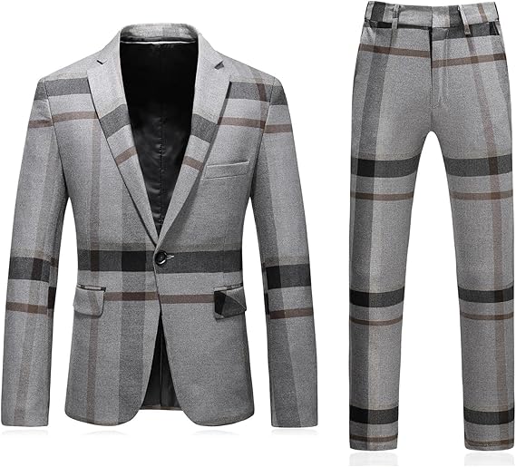 Mens Plaid Suit Slim Fit 2 Piece Casual Tuxedo Suit for Men Formal Blazer Pants Tuxedo Set for Wedding Business Party