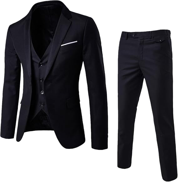 Men’s Slim Fit Suit One Button 3-Piece Blazer Dress Business Wedding Party Jacket Vest & Pant