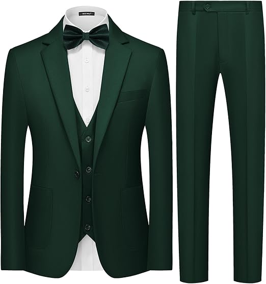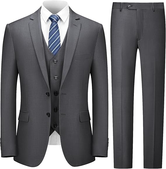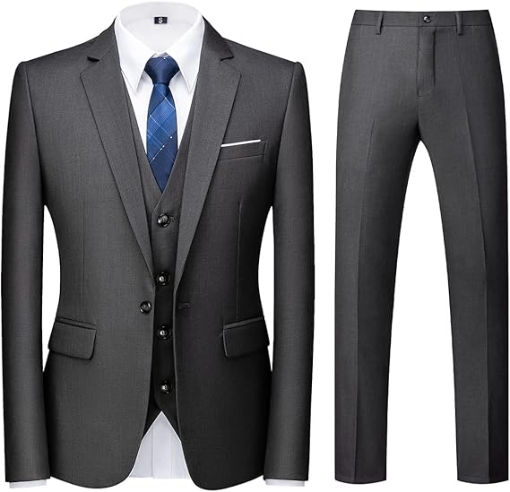 3 Piece Mens Suit Set, Slim Fit Suit for Men, Solid Jacket, Vest, Pants and Tie