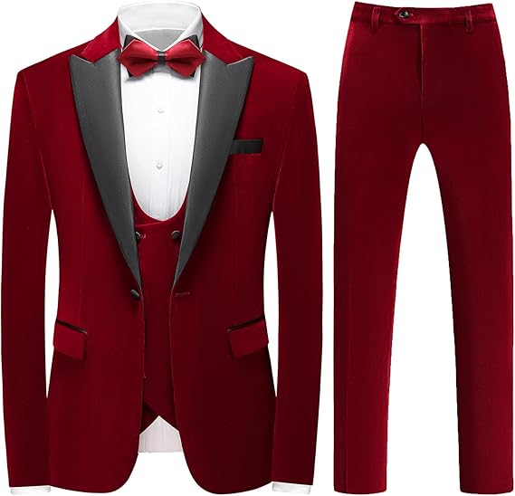 Mens Velvet 3 Piece Suits Slim Fit Peaked Lapel One Button Tuxedo Dinner Jacket Vest Pants Suit Set