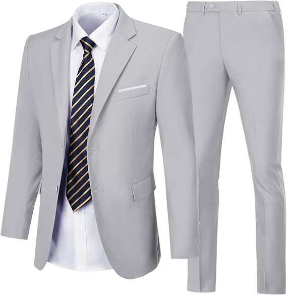 Mens Suits Slim Fit 2 Piece, Solid Blazer Pants Business Suit Set Prom Tuxedo Wedding Suit Jacket Pants Set