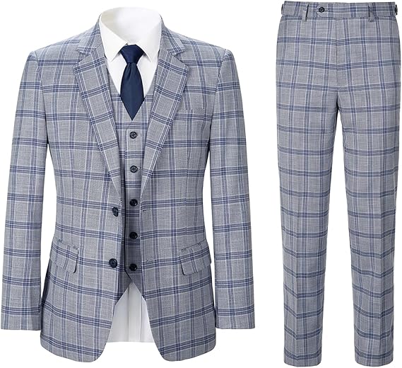 Men's 3 Pieces Slim Fit Plaid Suits Wedding Party Checked Tuxedo Blazer Jacket Vest Pants Suit Set