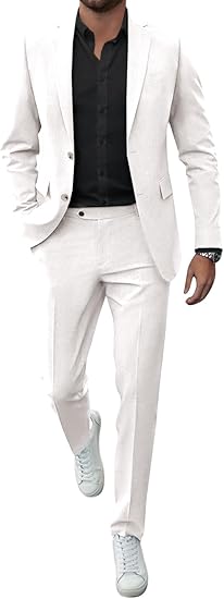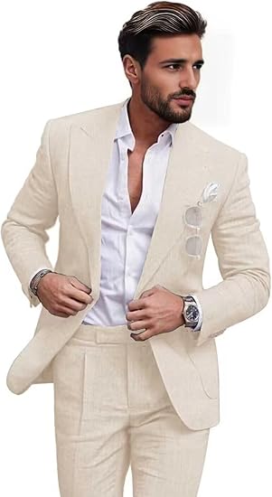 2 Piece Linen Suits for Men Summer Beach Wedding Suit Groomsmen Prom Casual Tuxedo Blazer Jacket Pants