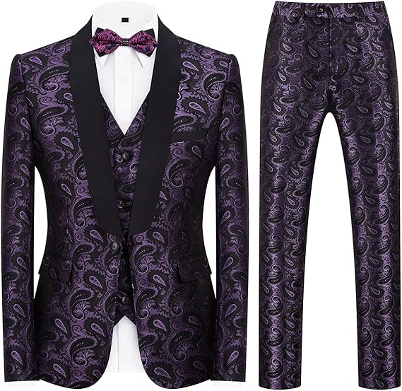 Mens Suits 3 Piece Slim Fit Tuxedo for Men Paisley Suit Prom Tux Shawl Lapel One Button Blazer Vest Pants Set